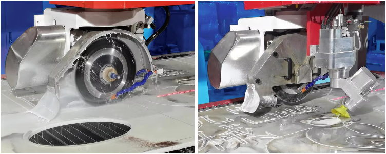 CNC saw is used for cutting stone slabs, countertops and sinks, blade profiling, engraving and more.